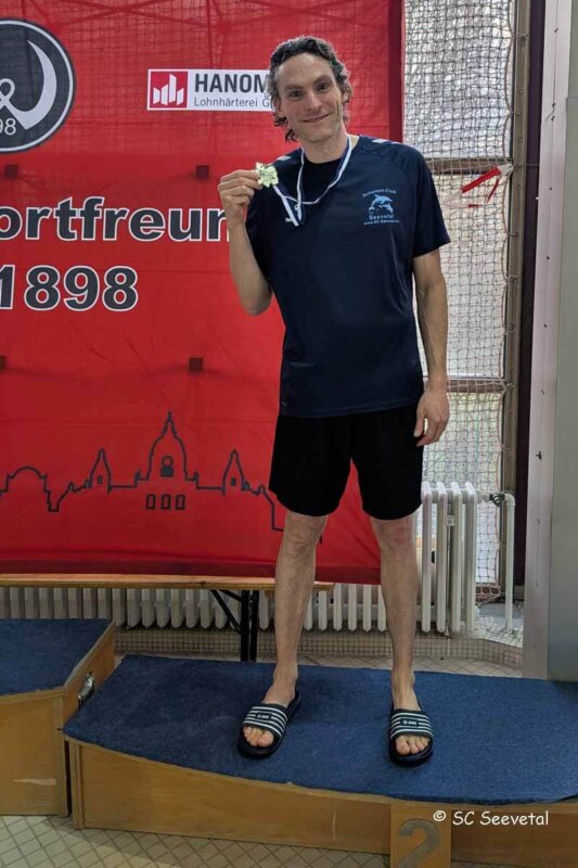 Hauke hatte an diesem Wochenende fünf Starts. 4x musste er sich knapp geschlagen geben und holte sich die Silbermedaille. Über 100F war Hauke am schnellsten, wurde mit Gold belohnt und ist Norddeutscher Mastersmeister 2026 in der AK45.