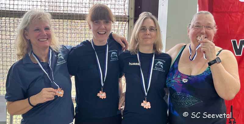 Edith und Johanna starteten außerdem in der Staffel 4x50m Brust. In der Besetzung Dagmar, Edith, Johanna und Mareike wurde Staffel in der Altersklasse E (200 – 239 Jahre) gewertet.