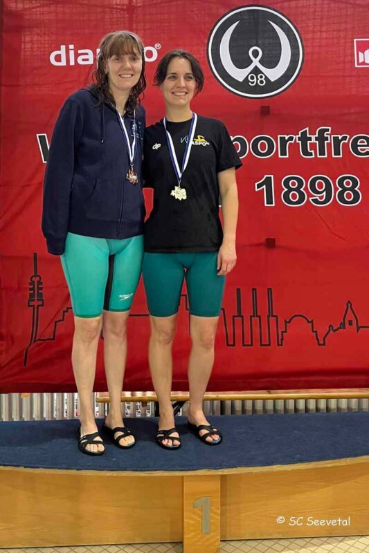 Edith hat in der AK70 (absolut) den Mastersrekord über 100B übernommen. Johanna schwimmt seit diesem Jahr in der AK35 und mischt gerade unsere AK35-Rekorde (absolut) der Damen auf. Aktuell hält sie die AK35-Rekorde über 100R, 200R, 100F, 200F, 400F, 800F und 1500F.